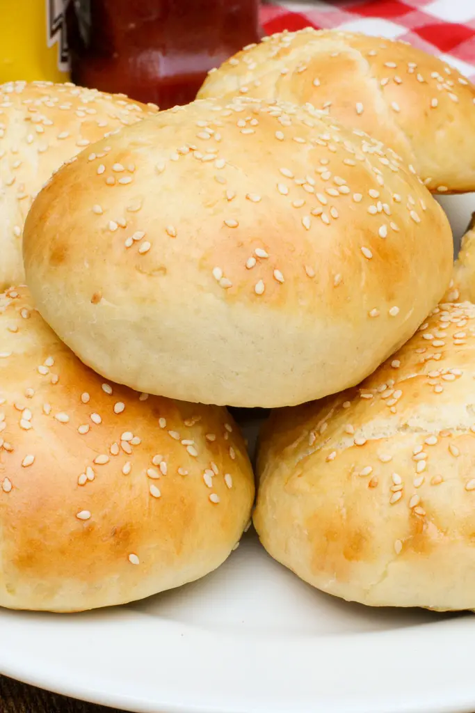 These hamburgers buns are so delicious! If you’ve ever had a hamburger made from a restaurant the actually makes its own bread, then you already know that fresh, yeasty, gourmet hamburger bun taste! It’s incredible.