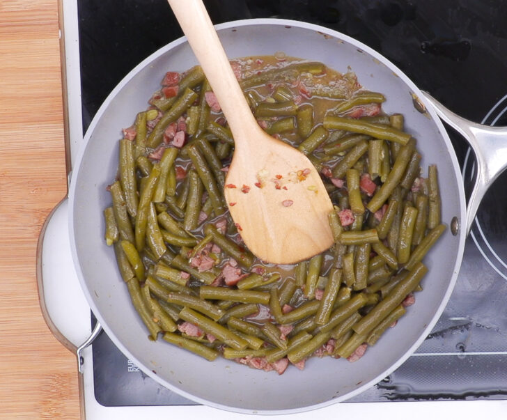- Simmer, don’t boil. I used to boil my Southern green beans the entire cooking time, and yes, they would get done quicker, but the rich flavor of the broth didn’t have time to fully soak into the beans. A slow simmer is worth every minute.